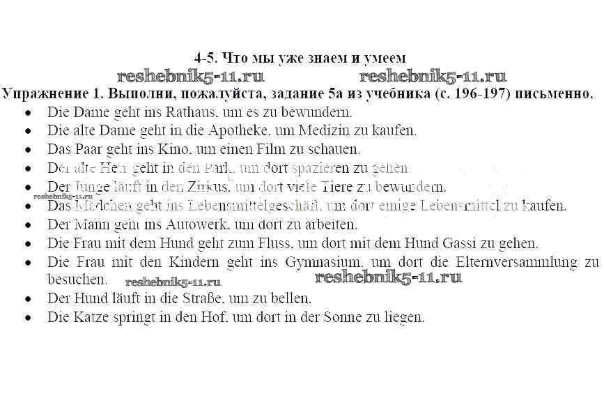 Готовая домашняя работа с ответами по Немецкому языку за 5 класс Бим Рабочая тетрадь Просвещение 2005 ФГОС - Что мы уже знаем и умеем 1