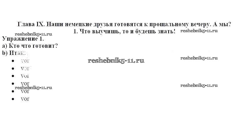 Решебник / Глава IX. Наши немецкие друзья готовятся к прощальному вечеру. А мы / Что выучишь, то и будешь знать! / 1