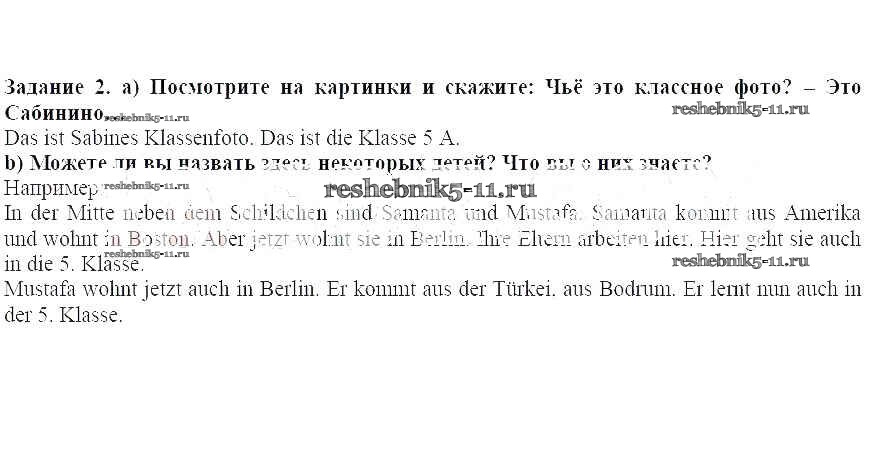 Готовая домашняя работа с ответами по Немецкому языку за 5 класс Бим Учебник Просвещение 2019 ФГОС - Раздел 1 2