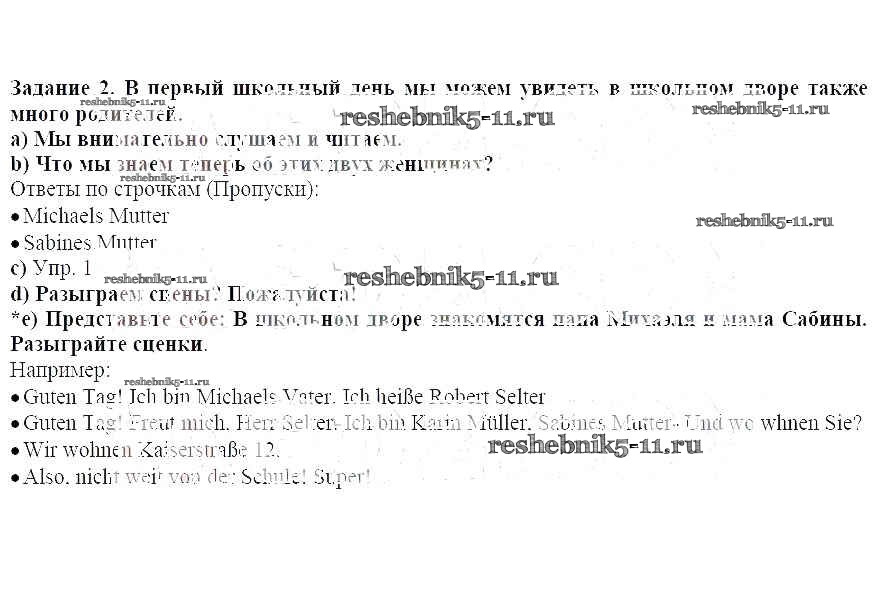 Готовая домашняя работа с ответами по Немецкому языку за 5 класс Бим Учебник Просвещение 2019 ФГОС - Раздел 2 2