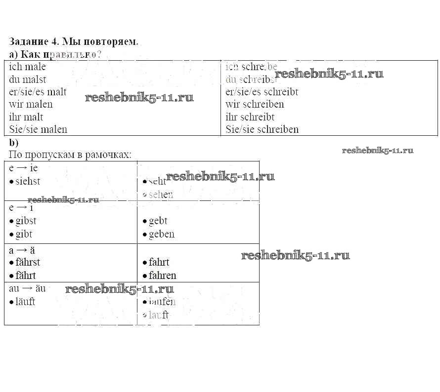 Готовая домашняя работа с ответами по Немецкому языку за 5 класс Бим Учебник Просвещение 2019 ФГОС - Раздел 3 4