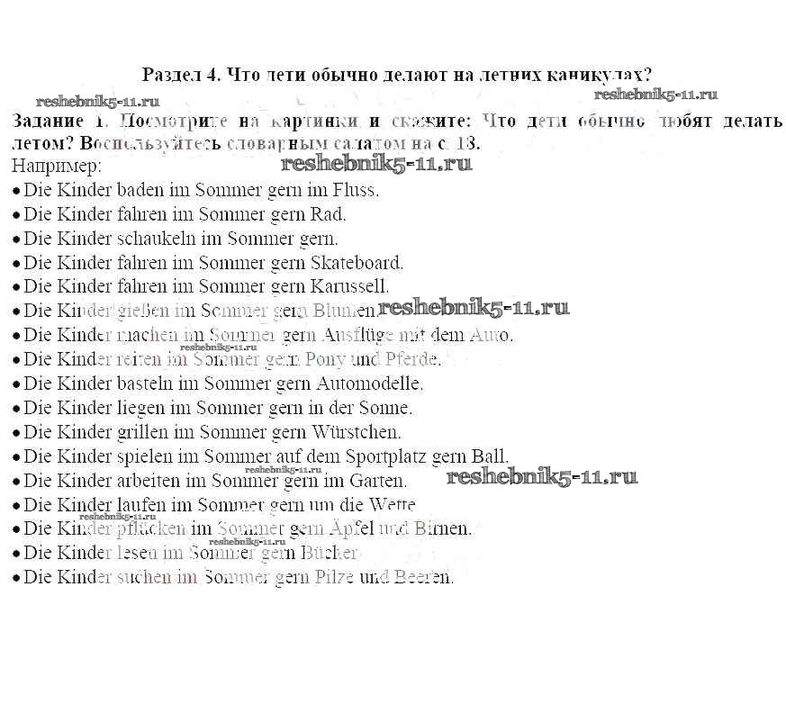 Готовая домашняя работа с ответами по Немецкому языку за 5 класс Бим Учебник Просвещение 2019 ФГОС - Раздел 4 1