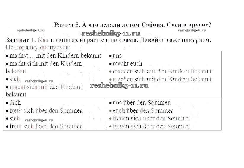 Готовая домашняя работа с ответами по Немецкому языку за 5 класс Бим Учебник Просвещение 2019 ФГОС - Раздел 5 1