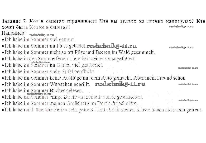 Готовая домашняя работа с ответами по Немецкому языку за 5 класс Бим Учебник Просвещение 2019 ФГОС - Раздел 5 7