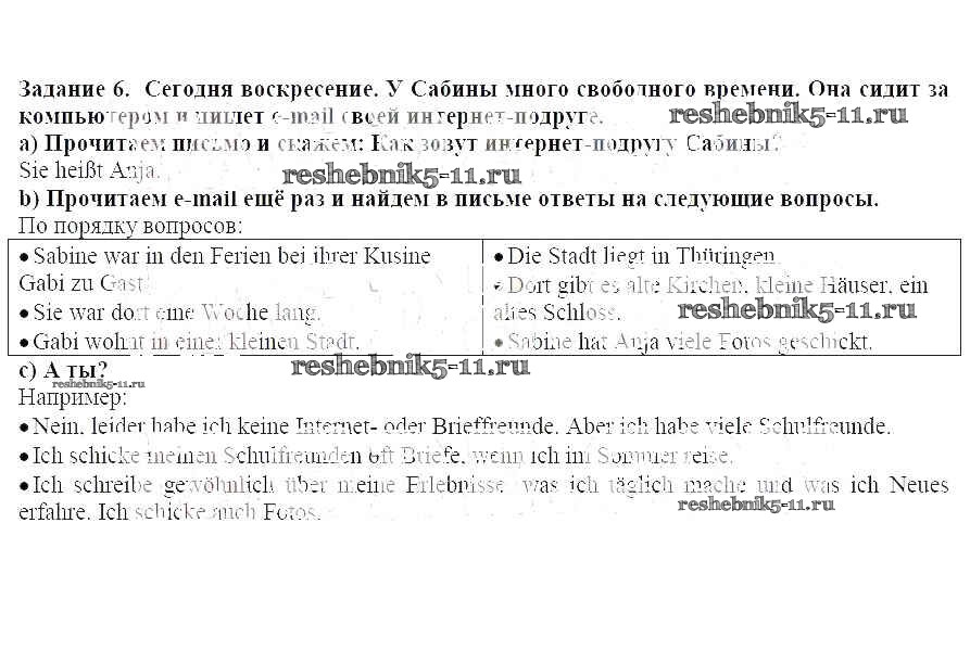 Готовая домашняя работа с ответами по Немецкому языку за 5 класс Бим Учебник Просвещение 2019 ФГОС - Раздел 6 6
