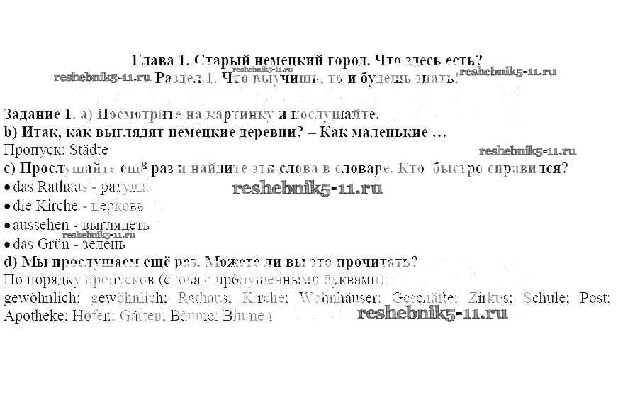 Готовая домашняя работа с ответами по Немецкому языку за 5 класс Бим Учебник Просвещение 2019 ФГОС - Раздел 1 1