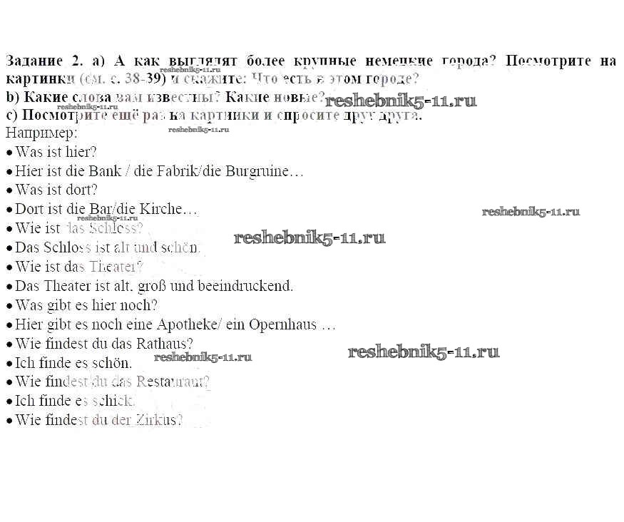 Готовая домашняя работа с ответами по Немецкому языку за 5 класс Бим Учебник Просвещение 2019 ФГОС - Раздел 1 2