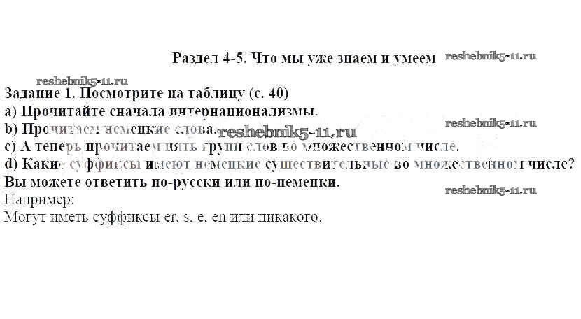 Готовая домашняя работа с ответами по Немецкому языку за 5 класс Бим Учебник Просвещение 2019 ФГОС - Раздел 4-5 1