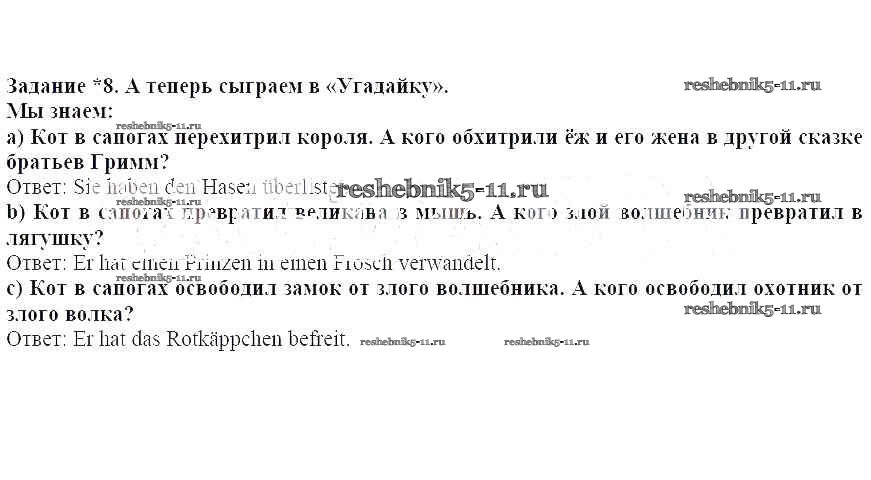 Готовая домашняя работа с ответами по Немецкому языку за 5 класс Бим Учебник Просвещение 2019 ФГОС - Раздел 4-5 8