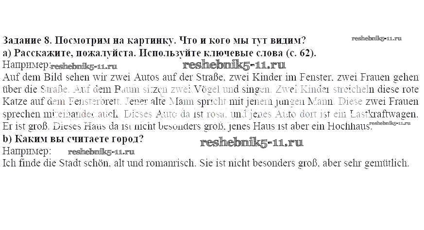 Готовая домашняя работа с ответами по Немецкому языку за 5 класс Бим Учебник Просвещение 2019 ФГОС - Раздел 1 8