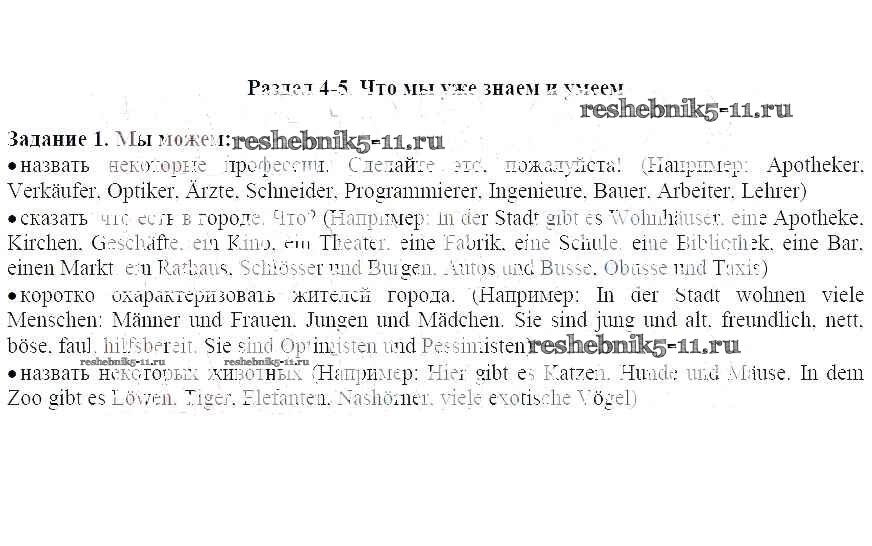 Готовая домашняя работа с ответами по Немецкому языку за 5 класс Бим Учебник Просвещение 2019 ФГОС - Раздел 4-5 1