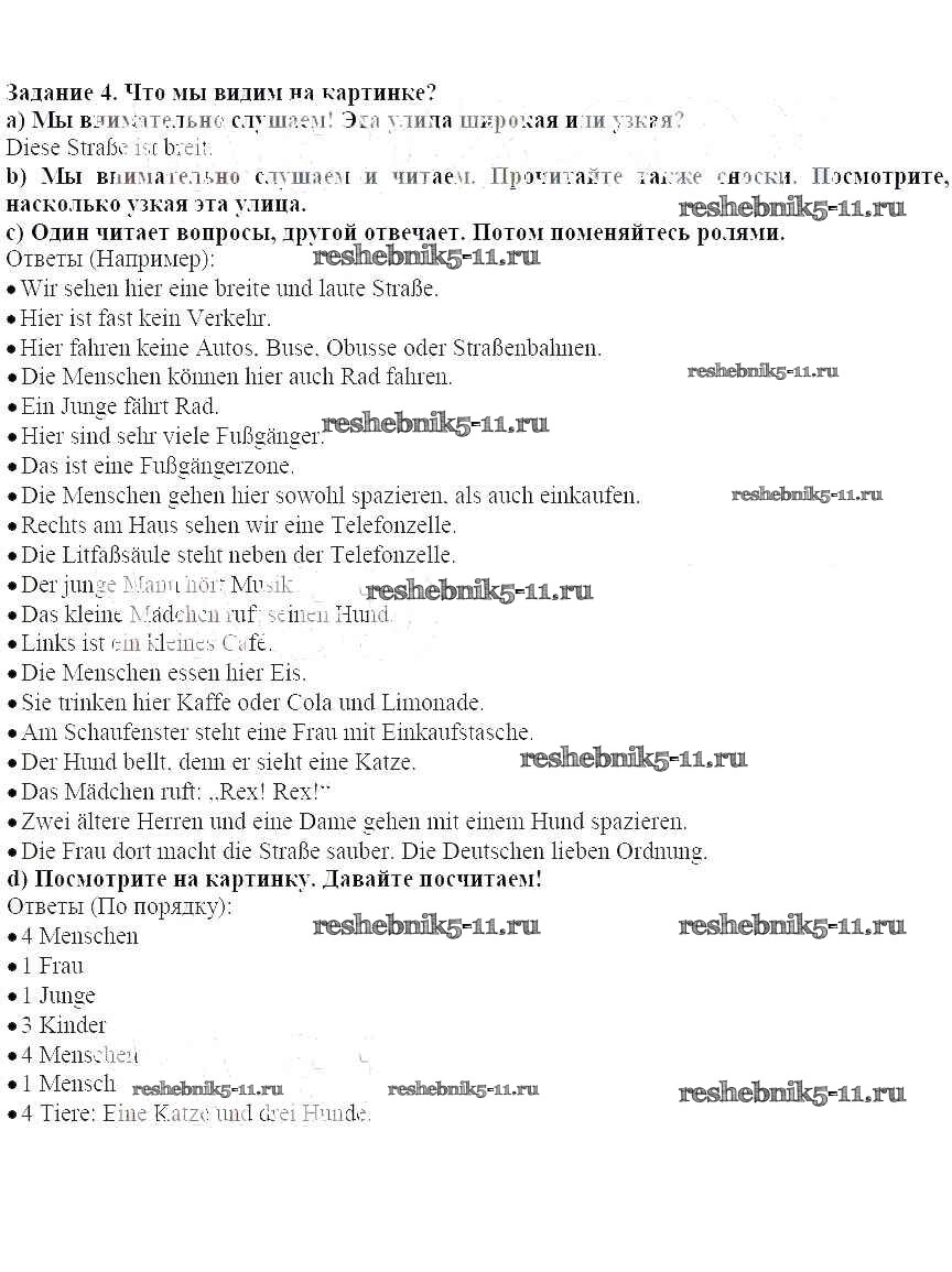 Готовая домашняя работа с ответами по Немецкому языку за 5 класс Бим Учебник Просвещение 2019 ФГОС - Раздел 1 4