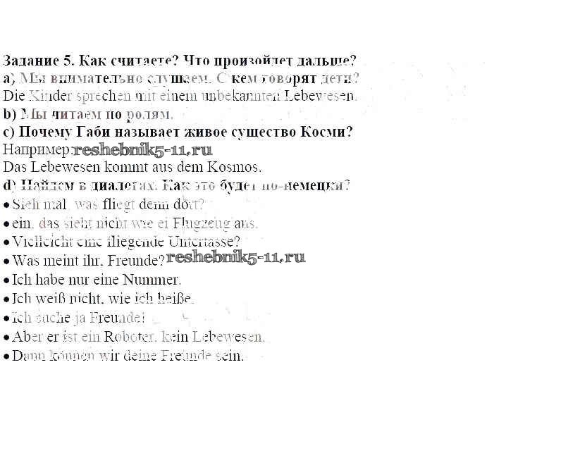 Готовая домашняя работа с ответами по Немецкому языку за 5 класс Бим Учебник Просвещение 2019 ФГОС - Раздел 2 5
