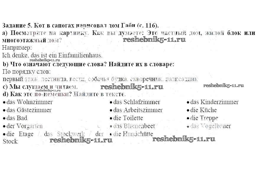 Готовая домашняя работа с ответами по Немецкому языку за 5 класс Бим Учебник Просвещение 2019 ФГОС - Раздел 1 5