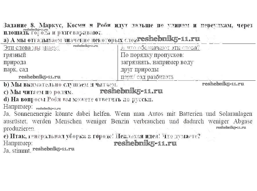 Готовая домашняя работа с ответами по Немецкому языку за 5 класс Бим Учебник Просвещение 2019 ФГОС - Раздел 4-5 8