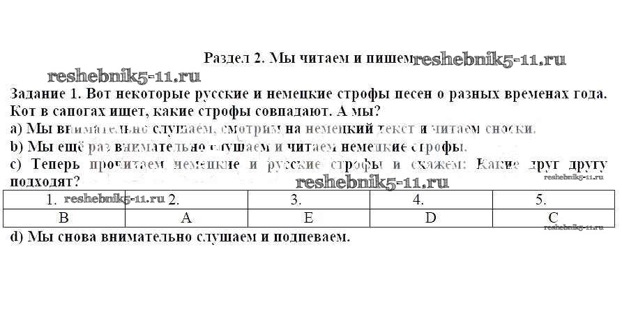 Готовая домашняя работа с ответами по Немецкому языку за 5 класс Бим Учебник Просвещение 2019 ФГОС - Раздел 2 1