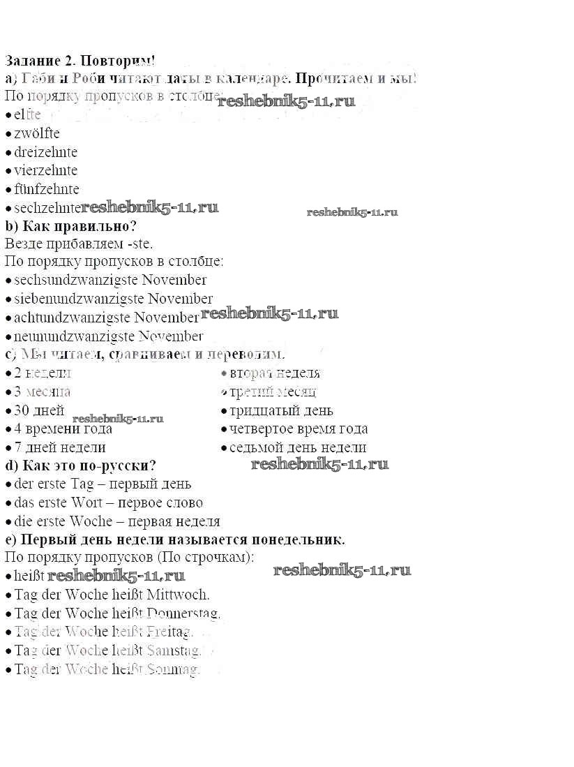Готовая домашняя работа с ответами по Немецкому языку за 5 класс Бим Учебник Просвещение 2019 ФГОС - Раздел 2 2