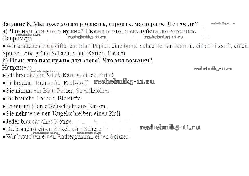 Готовая домашняя работа с ответами по Немецкому языку за 5 класс Бим Учебник Просвещение 2019 ФГОС - Раздел 2 8