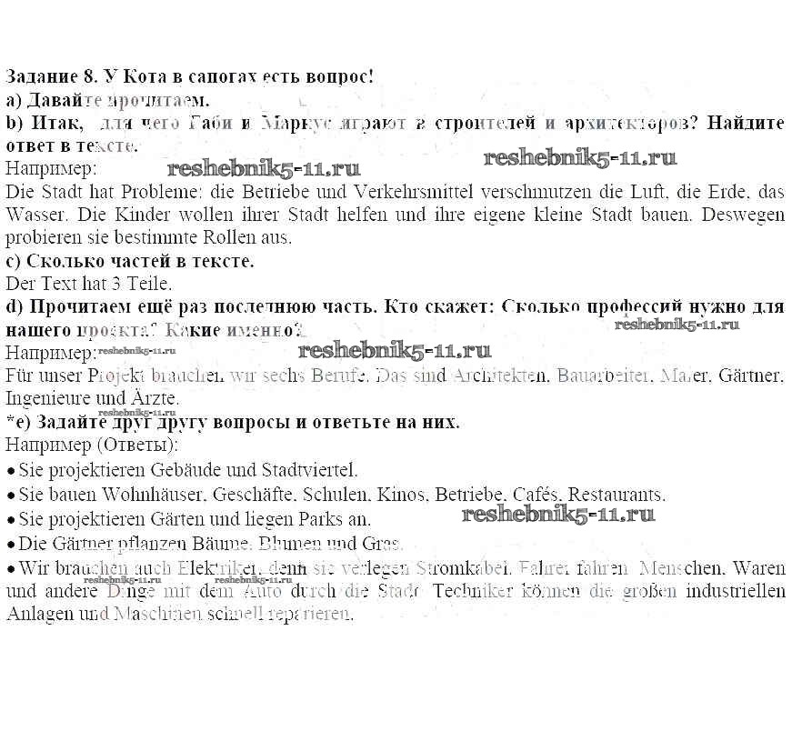 Готовая домашняя работа с ответами по Немецкому языку за 5 класс Бим Учебник Просвещение 2019 ФГОС - Раздел 4-5 8