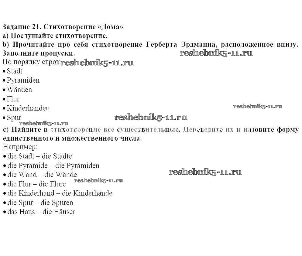 Готовая домашняя работа с ответами по Немецкому языку за 5 класс Яковлева Учебник Wunderkinder Plus Углубленный уровень Просвещение 2020 ФГОС - Уроки 1-13 21