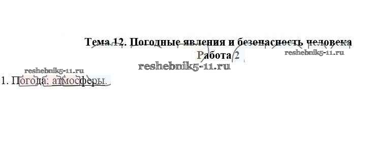 Тема 12. Погодные явления и безопасность человека