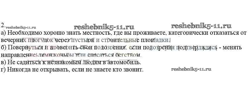 Готовая домашняя работа с ответами по ОБЖ за 5 класс Демидов Рабочая тетрадь Лицей 2016 - Работа 2 2