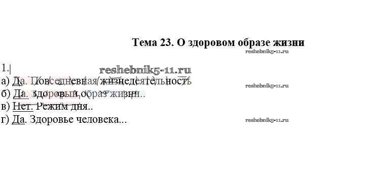 Готовая домашняя работа с ответами по ОБЖ за 5 класс Демидов Рабочая тетрадь Лицей 2016 - Тема 23. О здоровом образе жизни 1