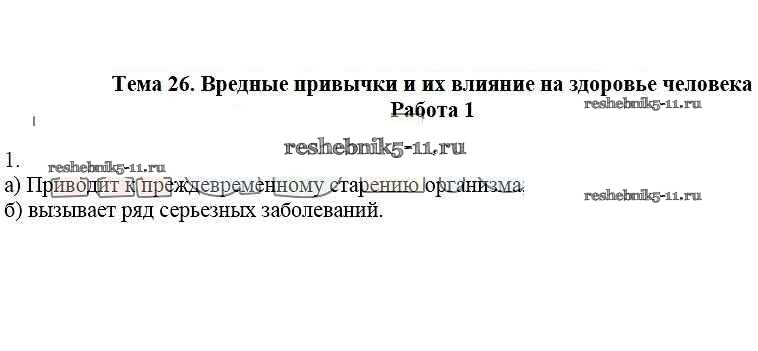 Тема 26. Вредные привычки и их влияние на здоровье человека