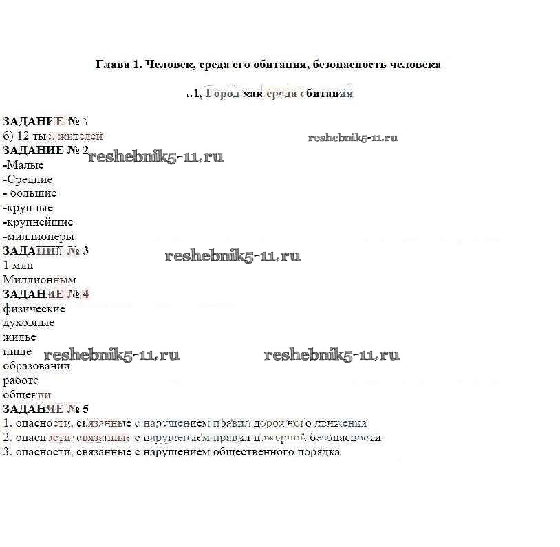 Готовая домашняя работа с ответами по ОБЖ за 5 класс Смирнов, Хренников, Маслов Рабочая тетрадь Просвещение 2019 ФГОС - Глава 1 §1