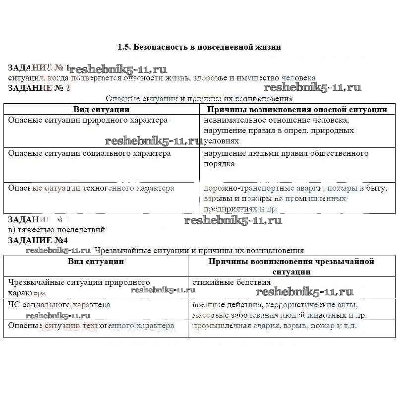 Готовая домашняя работа с ответами по ОБЖ за 5 класс Смирнов, Хренников, Маслов Рабочая тетрадь Просвещение 2019 ФГОС - Глава 1 §5
