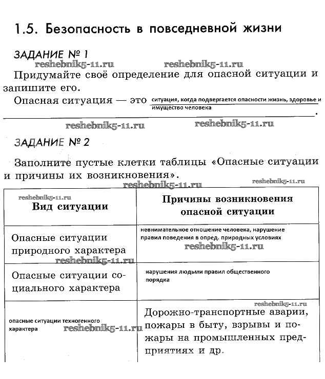 ОБЖ за 5 класс Смирнов Рабочая тетрадь Просвещение глава 1 §5