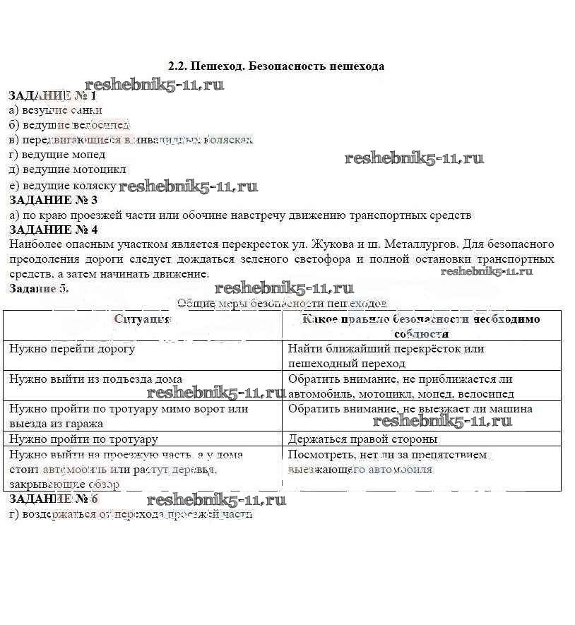 ОБЖ за 5 класс Смирнов Рабочая тетрадь Просвещение глава 2 §2