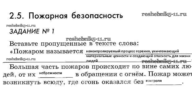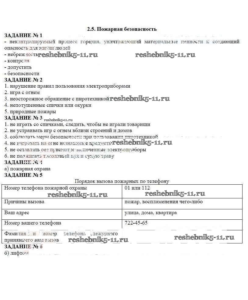 ОБЖ за 5 класс Смирнов Рабочая тетрадь Просвещение глава 2 §5