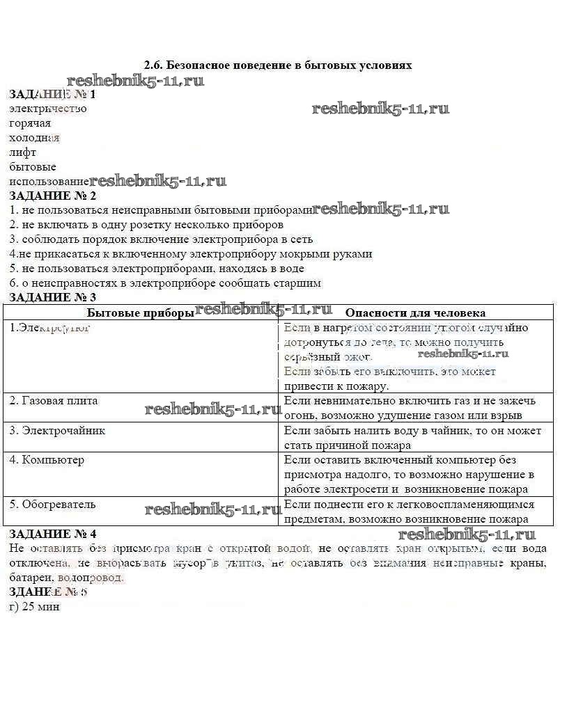 Готовая домашняя работа с ответами по ОБЖ за 5 класс Смирнов, Хренников, Маслов Рабочая тетрадь Просвещение 2019 ФГОС - Глава 2 §6
