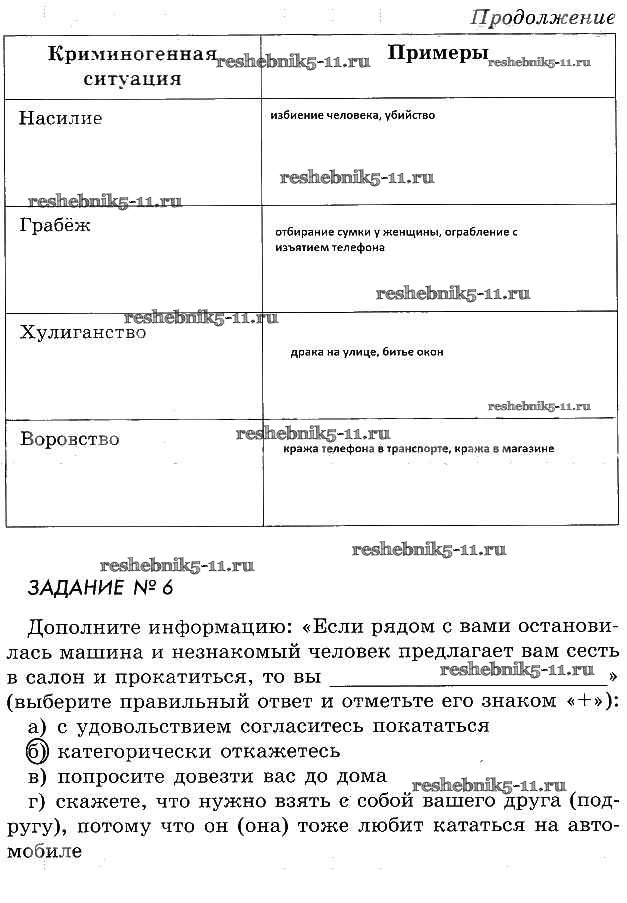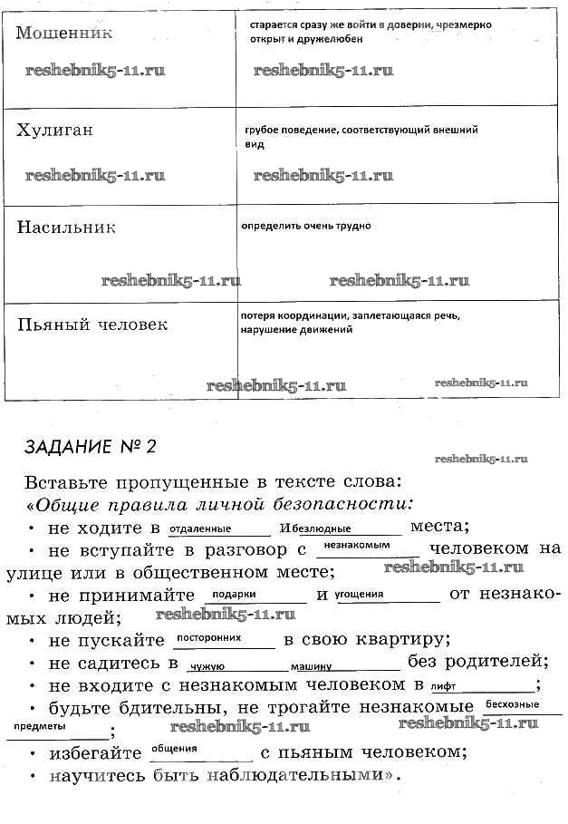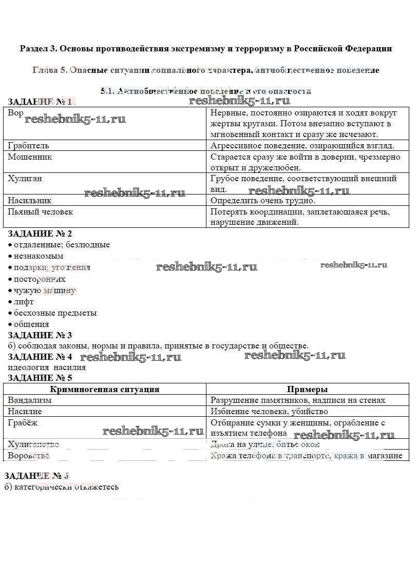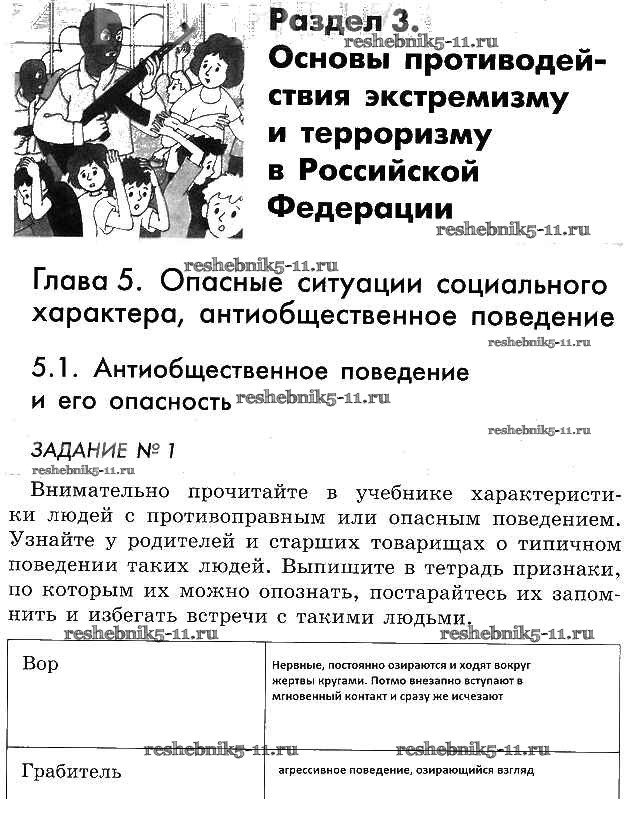 ОБЖ за 5 класс Смирнов Рабочая тетрадь Просвещение глава 5 §1