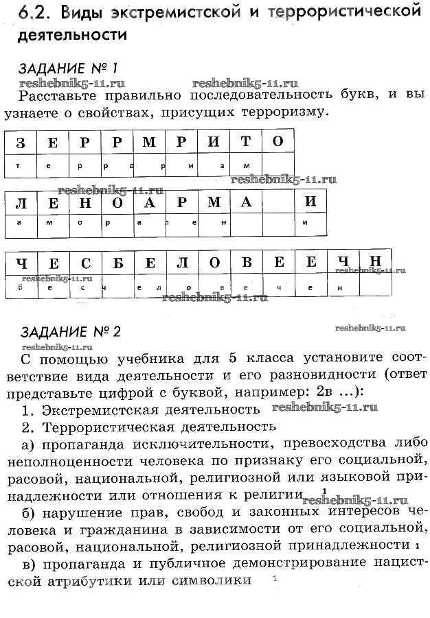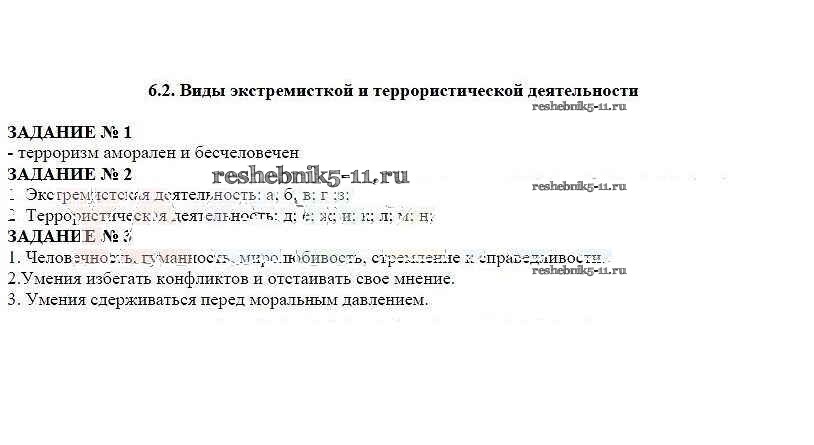 ОБЖ за 5 класс Смирнов Рабочая тетрадь Просвещение глава 6 §2