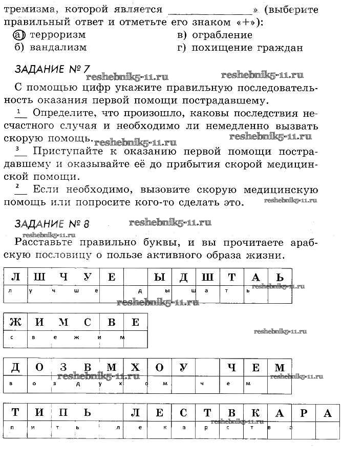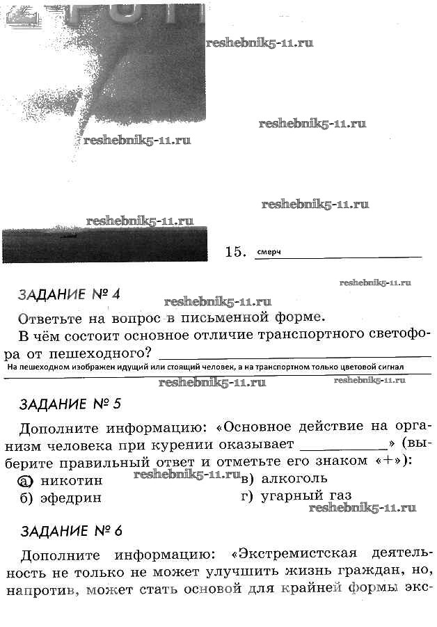 ОБЖ за 5 класс Смирнов Рабочая тетрадь Просвещение глава 9 Итоговая проверочная работа