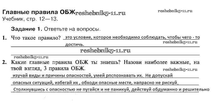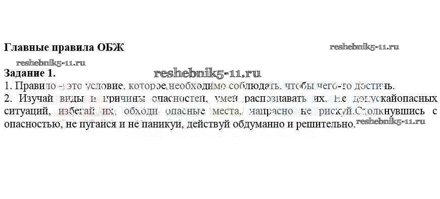 Готовая домашняя работа с ответами по ОБЖ за 5 класс Драновская Рабочая тетрадь Аст/Астрель 2014 ФГОС - 2. Главные правила ОБЖ 1