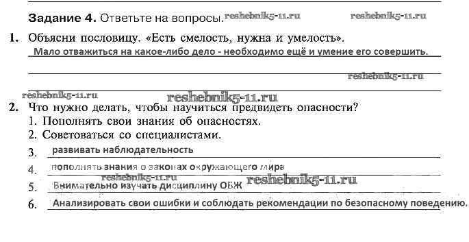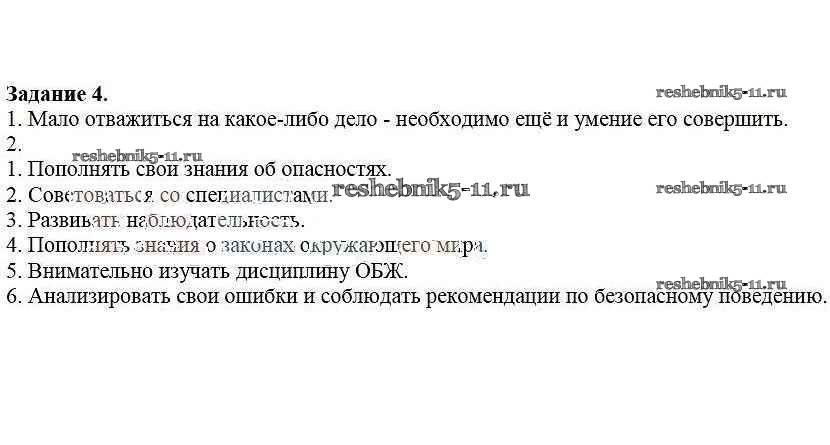 Готовая домашняя работа с ответами по ОБЖ за 5 класс Драновская Рабочая тетрадь Аст/Астрель 2014 ФГОС - 3. Как научиться выявлять и предвидеть опасности 4