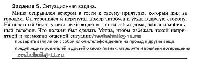 Готовая домашняя работа с ответами по ОБЖ за 5 класс Драновская Рабочая тетрадь Аст/Астрель 2014 ФГОС - 3. Как научиться выявлять и предвидеть опасности 5