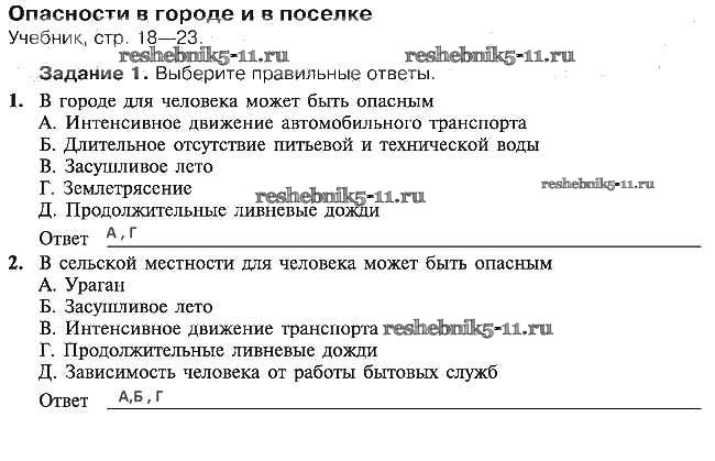 Готовая домашняя работа с ответами по ОБЖ за 5 класс Драновская Рабочая тетрадь Аст/Астрель 2014 ФГОС - 4. Опасности в городе и в поселке 1