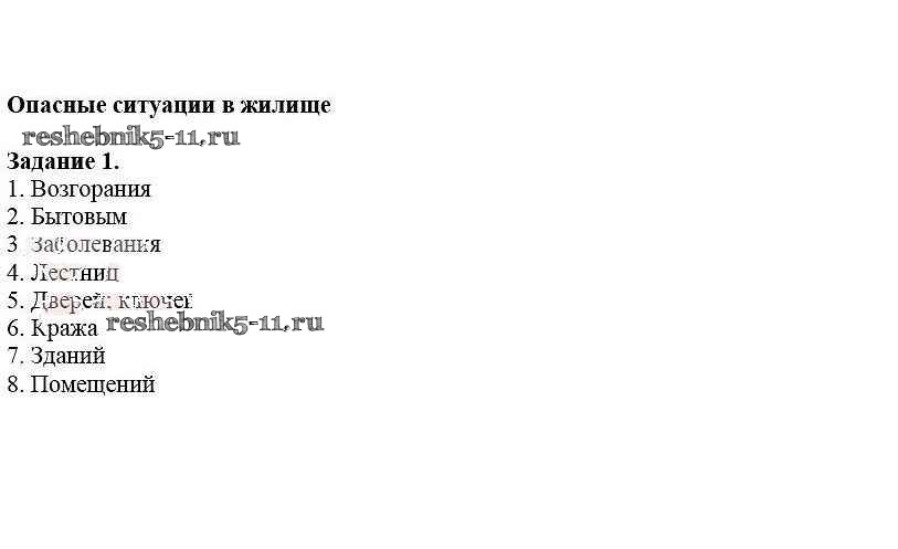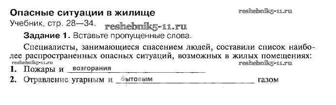Готовая домашняя работа с ответами по ОБЖ за 5 класс Драновская Рабочая тетрадь Аст/Астрель 2014 ФГОС - 6. Опасные ситуации в жилище 1