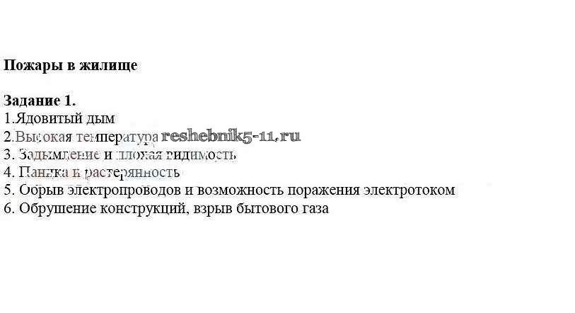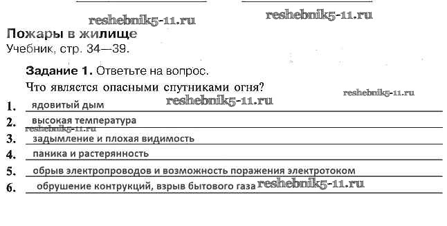 Готовая домашняя работа с ответами по ОБЖ за 5 класс Драновская Рабочая тетрадь Аст/Астрель 2014 ФГОС - 7. Пожары в жилище 1