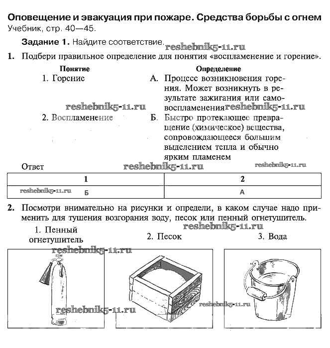 Готовая домашняя работа с ответами по ОБЖ за 5 класс Драновская Рабочая тетрадь Аст/Астрель 2014 ФГОС - 8. Оповещение и эвакуация при пожаре. Средства борьбы с огнем 1