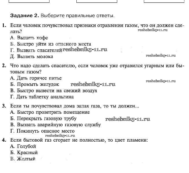 Готовая домашняя работа с ответами по ОБЖ за 5 класс Драновская Рабочая тетрадь Аст/Астрель 2014 ФГОС - 9. Опасные газы, с ними не шутят 2