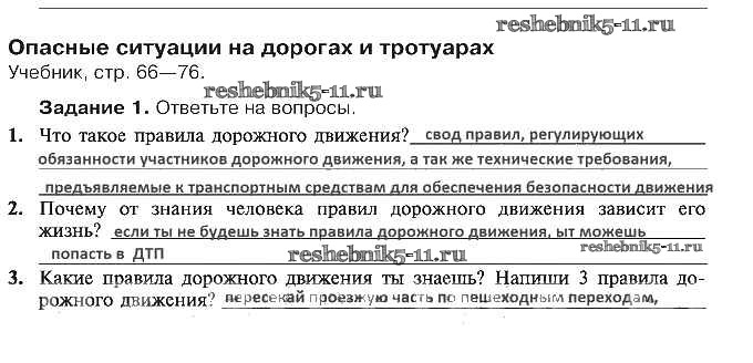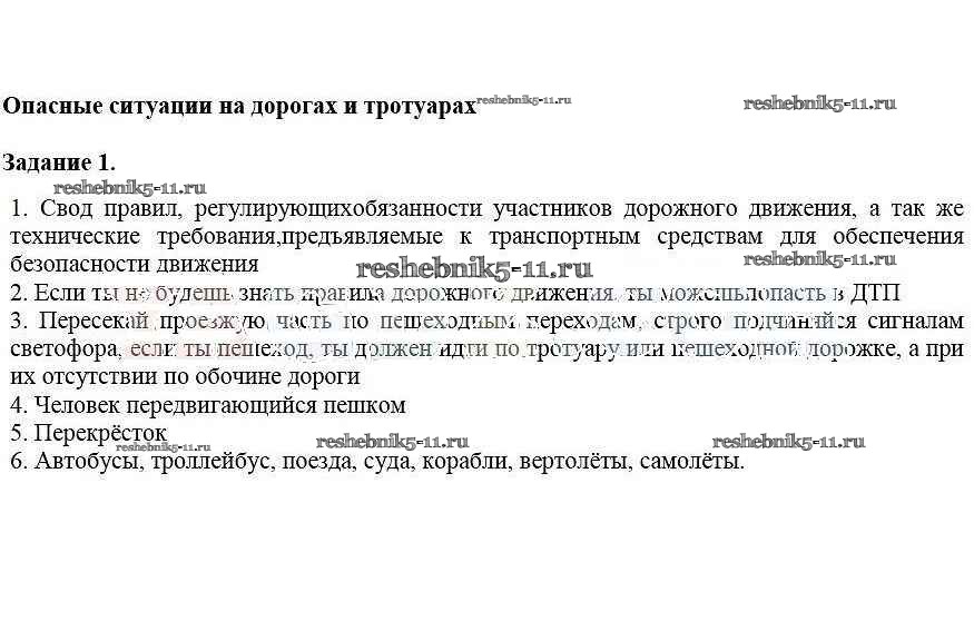 Готовая домашняя работа с ответами по ОБЖ за 5 класс Драновская Рабочая тетрадь Аст/Астрель 2014 ФГОС - 13. Опасные ситуации на дорогах и тротуарах 1
