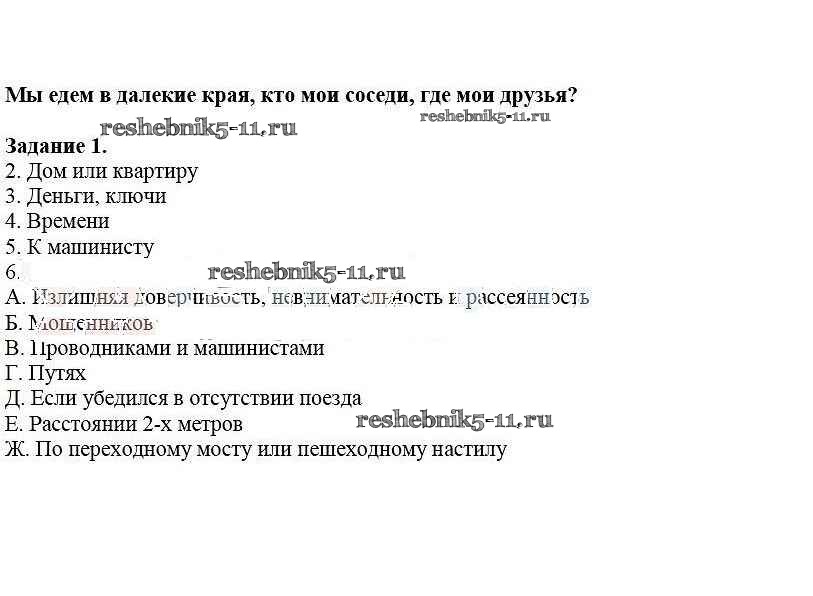 Готовая домашняя работа с ответами по ОБЖ за 5 класс Драновская Рабочая тетрадь Аст/Астрель 2014 ФГОС - 16. Мы едем в далекие края, кто мои соседи, где мои друзья 1