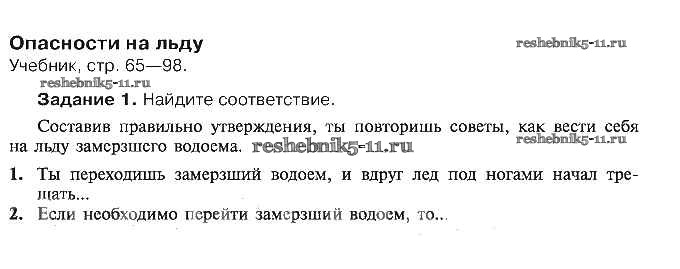 Готовая домашняя работа с ответами по ОБЖ за 5 класс Драновская Рабочая тетрадь Аст/Астрель 2014 ФГОС - 18. Опасности на льду 1