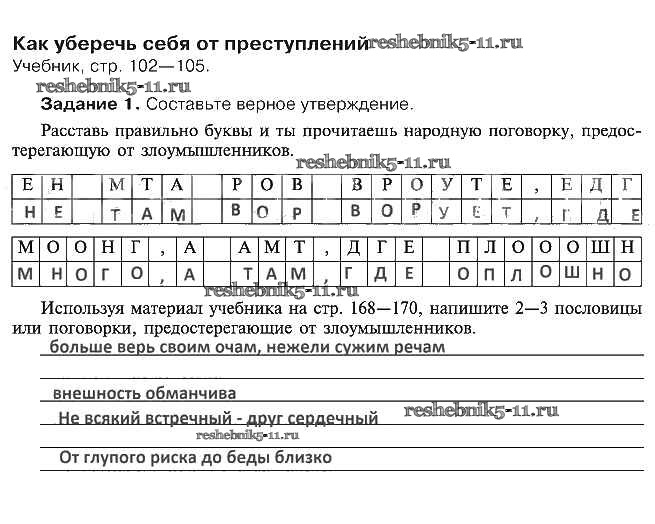 Готовая домашняя работа с ответами по ОБЖ за 5 класс Драновская Рабочая тетрадь Аст/Астрель 2014 ФГОС - 20. Как уберечь себя от преступлений 1