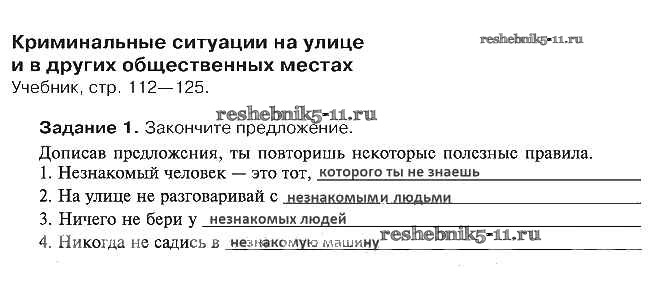 Готовая домашняя работа с ответами по ОБЖ за 5 класс Драновская Рабочая тетрадь Аст/Астрель 2014 ФГОС - 22. Криминальные ситуации на улице и в других общественных местах 1